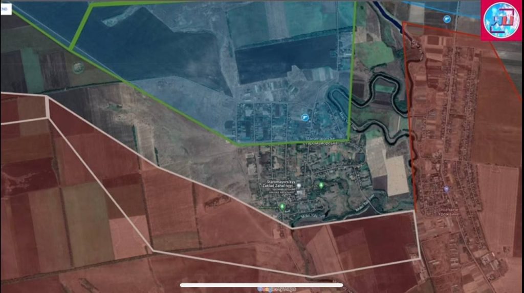 Staromayorsk viene indicato (nella mappa qui sotto) nella cosiddetta “zona grigia” (o “terra di nessuno”) mengre nelle prossime ore i russi potrebbero contrattaccare dopo che l’artiglieria ha indebolito le forze ucraine secondo uno schema ormai collaudato in questa come in altre battaglie in atto lungo la Linea Surovikin eretta dai russi a difesa degli accessi alla Crimea e al Mare d’Azov.