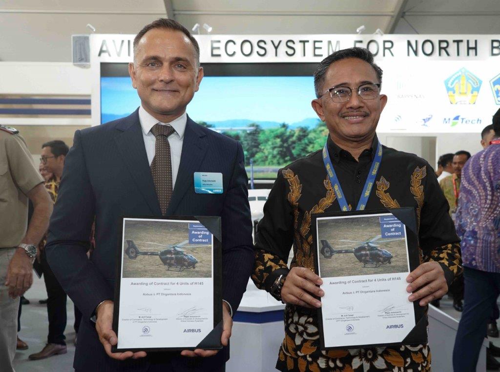 In base all’accordo tra l’Aeronautica Militare Indonesiana e PT Dirgantara Indonesia (PTDI), Airbus consegnerà gli H145 pentapala a PTDI, che gestirà il riassemblaggio e il completamento delle attrezzature per le missioni e altri lavori di personalizzazione presso il suo stabilimento di Bandung, in Indonesia, per la consegna finale all’Aeronautica Militare. Questi elicotteri multimissione saranno impiegati per l’addestramento militare e per missioni leggere di ricerca e soccorso.