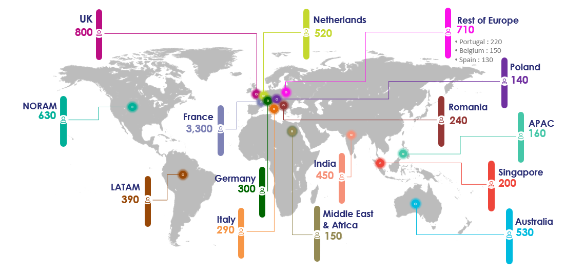 Nel 2026, Thales prevede di inserire quasi 3.300 risorse in Francia, 800 nel Regno Unito, 630 in Nord America, 530 in Australia, 520 nei Paesi Bassi, 450 in India, 300 in Germania, 240 in Romania, 200 a Singapore, 150 in Messico e 140 in Polonia. In Italia il Gruppo prevede di assumere 290 persone tra Thales Italia e Thales Alenia Space.
